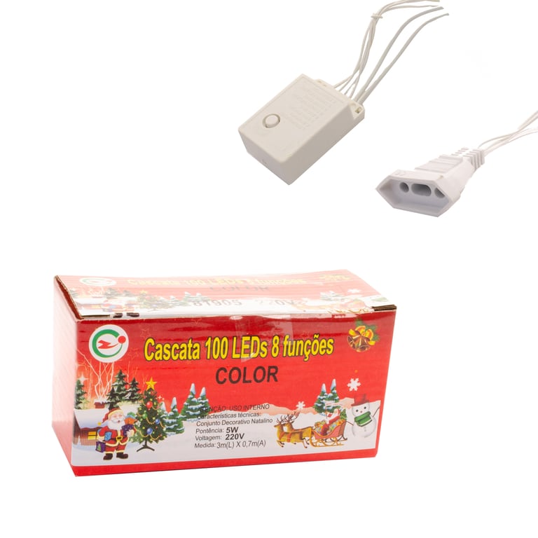 CASCATA 100 LEDS COLORIDA MACHO / FÊMEA 8 F 70 CMX3 M FIO BRANCO 220V