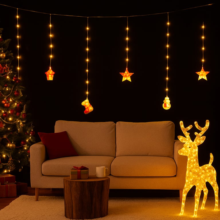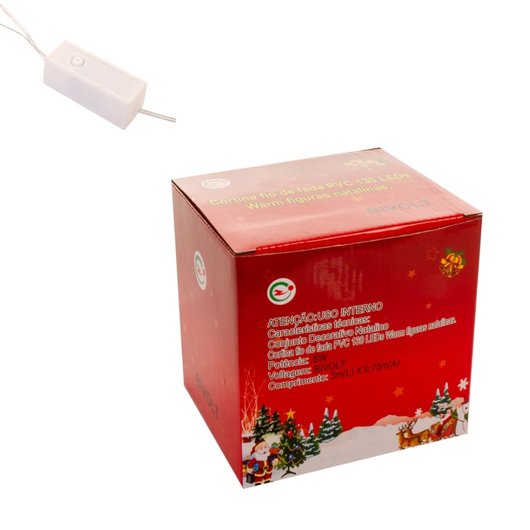 Observações POTÊNCIA: 6W VOLTAGEM: BIVOLT. POSSUI CONTROLE COM 8 FUNÇÕES DIFERENTE. CONTÉM 5 ESTRELAS 1 PAPAI NOEL, 1 ÁRVORE, 1 BONECO DE NEVE, 1 BOTA E 1 CASA. FIO DE FADA TRANSPARENTE.