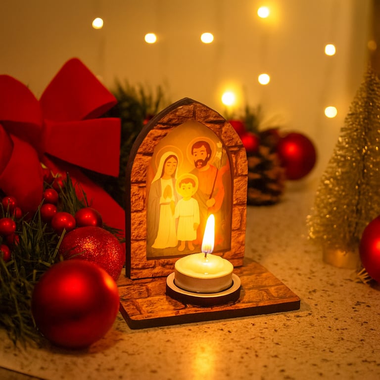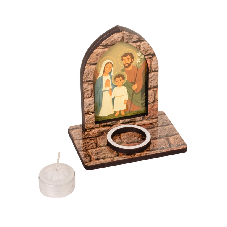 CASTIÇAL MADEIRA 13X11,5X8 CM SAGRADA FAMÍLIA