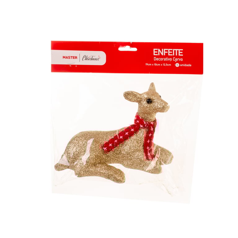 CERVO / RENA DECORATIVO 12,5X19X10 CM GLITTER DOURADO