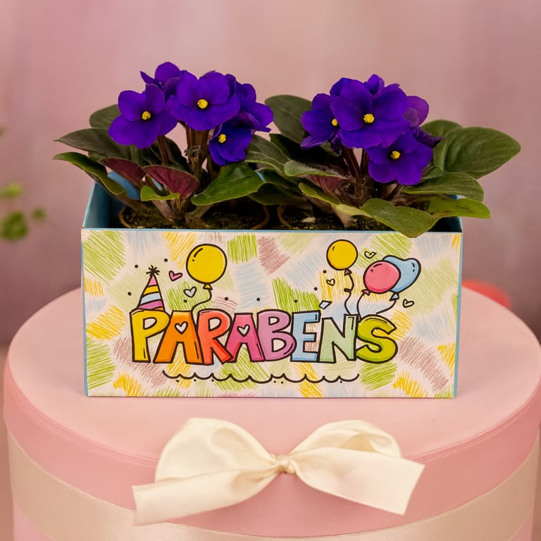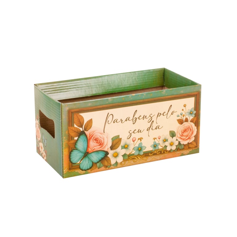CESTA / CACHEPÔ KRAFT 11,2X22,3X11 CM DUAS VIOLETAS ESTAMPADO