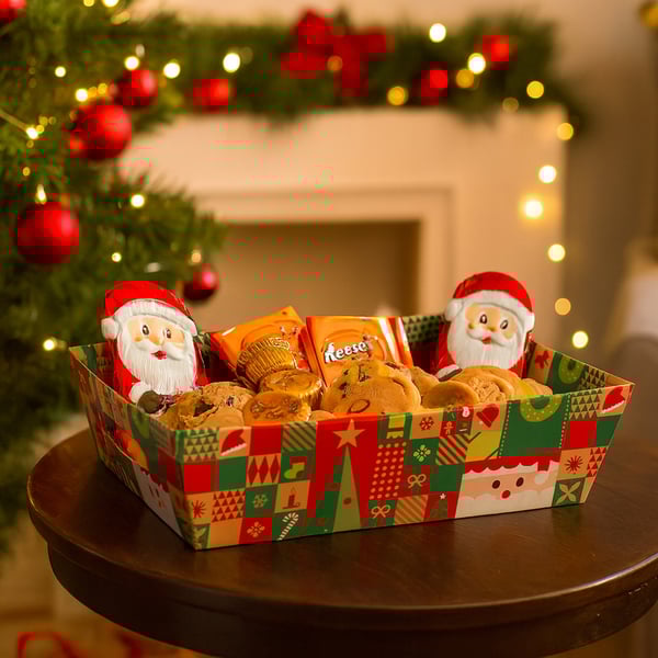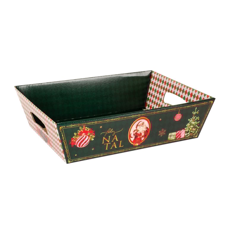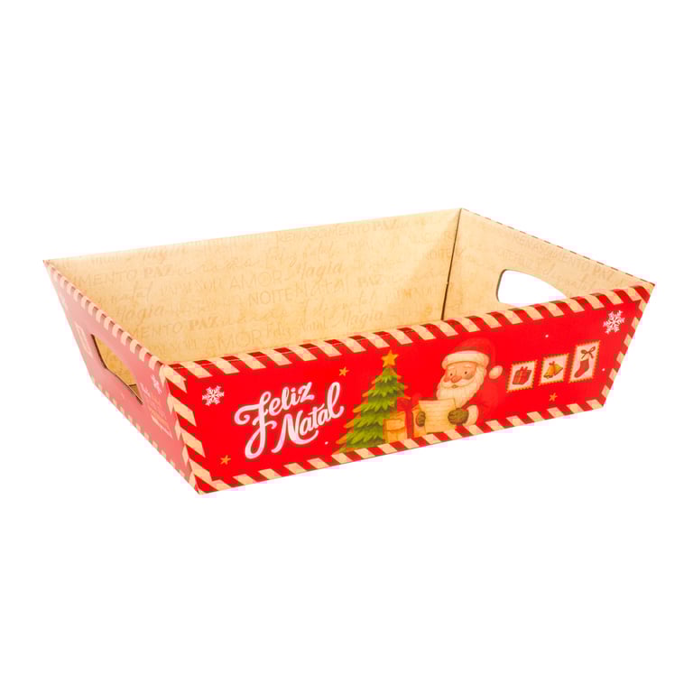 CESTA KRAFT 9,5X31X22,5 CM COM ALÇAS DECORADA NATAL ACOPLADA