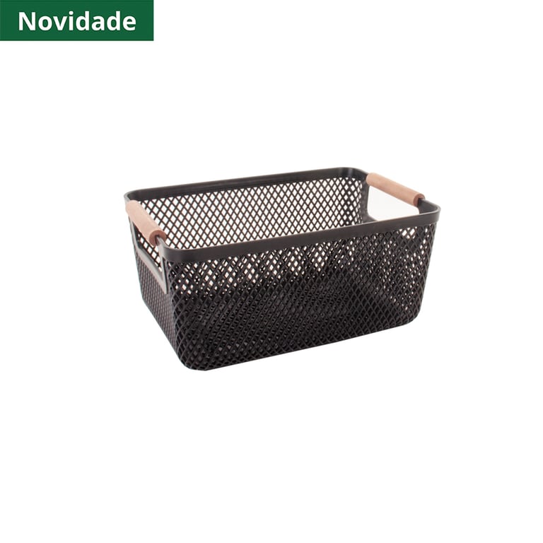 CESTA / ORGANIZADOR PLÁSTICO 12X27X18,3 CM TELADA ALÇAS MADEIRA