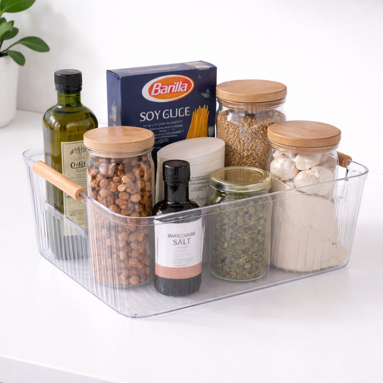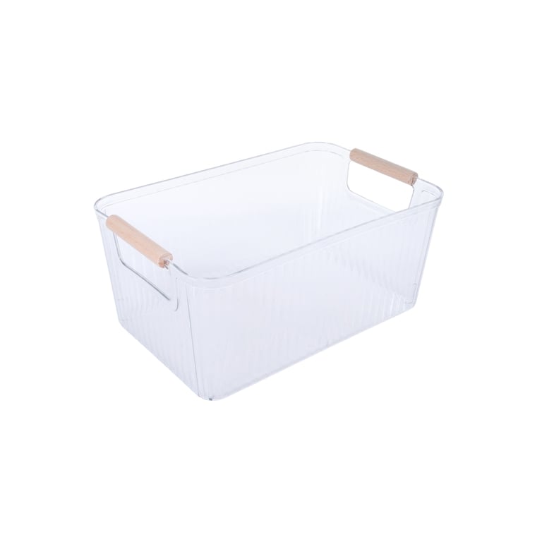 CESTA / ORGANIZADOR PLÁSTICO 13,5X31X20 CM CANELADO ALÇAS MADEIRA