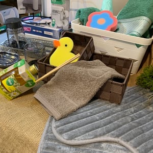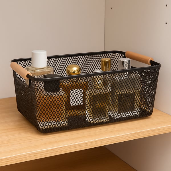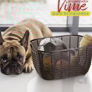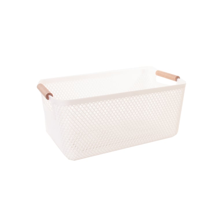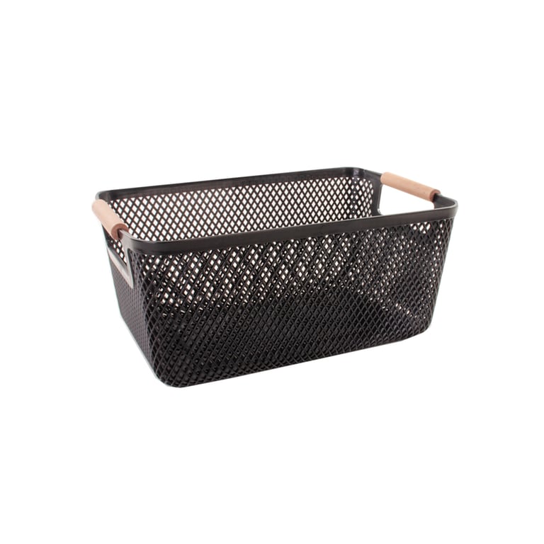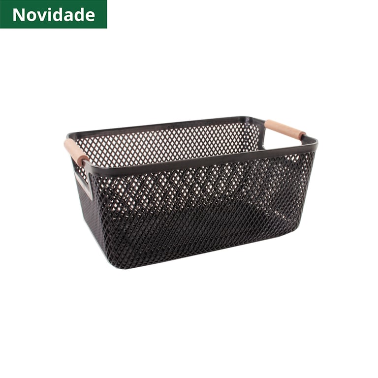 CESTA / ORGANIZADOR PLÁSTICO 20X31X14 CM TELADA ALÇAS MADEIRA