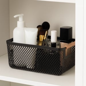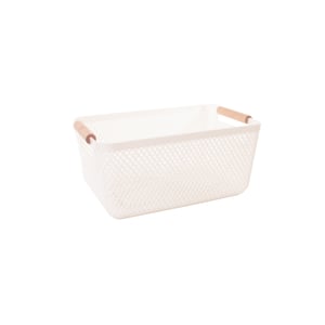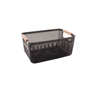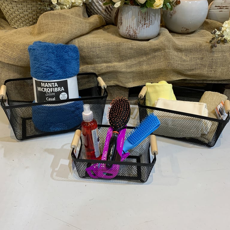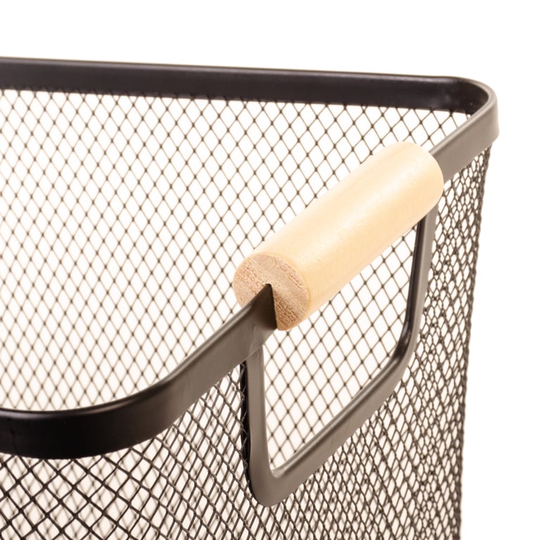 CESTO AÇO 10X25X17,5 CM RETANGULAR TELADO COM ALÇAS MADEIRA
