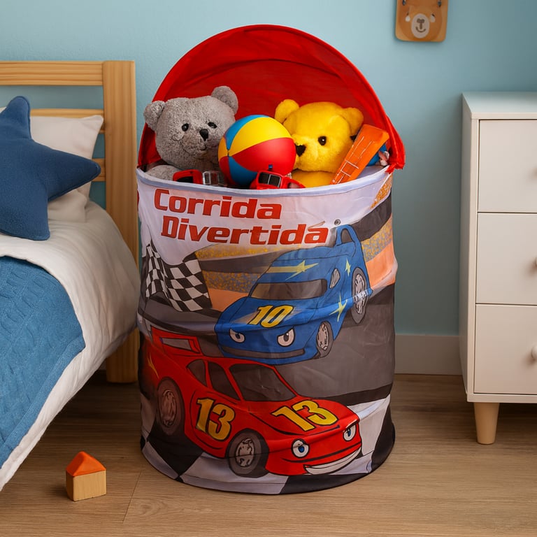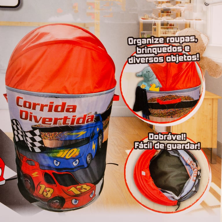 CESTO ARMADO 70X45 CM CORRIDA DIVERTIDA DOBRÁVEL MULTIUSO