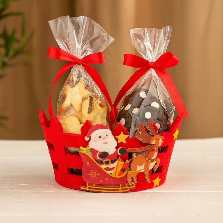 CESTO FELTRO 10X14 CM REDONDO CERCADO NATAL