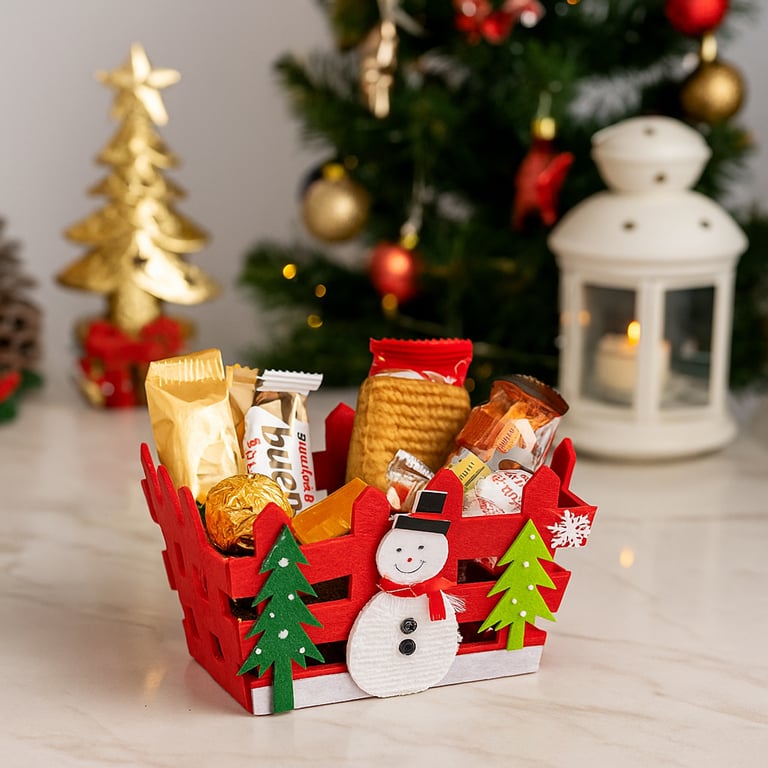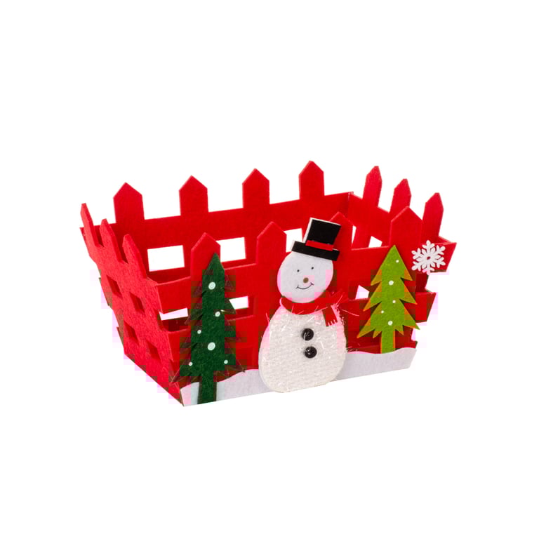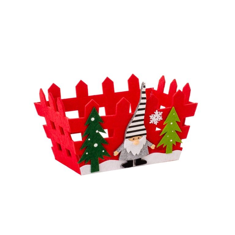 CESTO FELTRO 14X23X16 CM RETANGULAR CERCADO VERMELHO NATAL