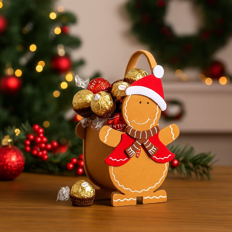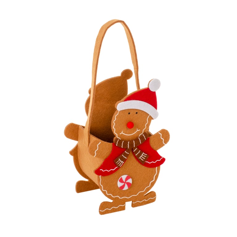 CESTO FELTRO 22X14X9 CM CM BONECO DE NEVE MARROM NATAL