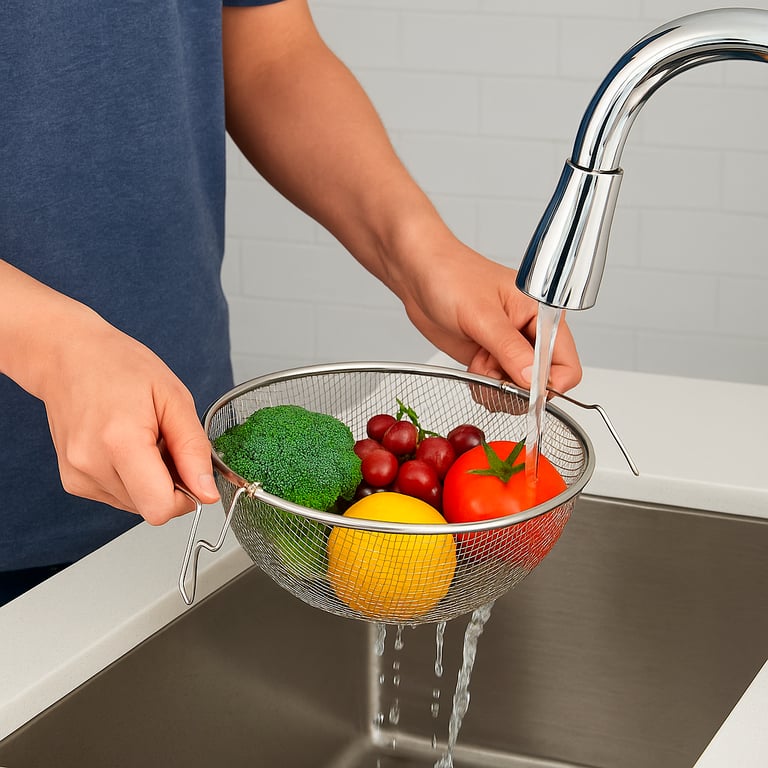 CESTO PENEIRA METAL 10X26 CM ESCORREDOR / FRITURA