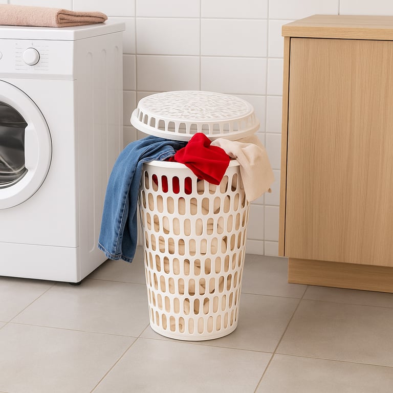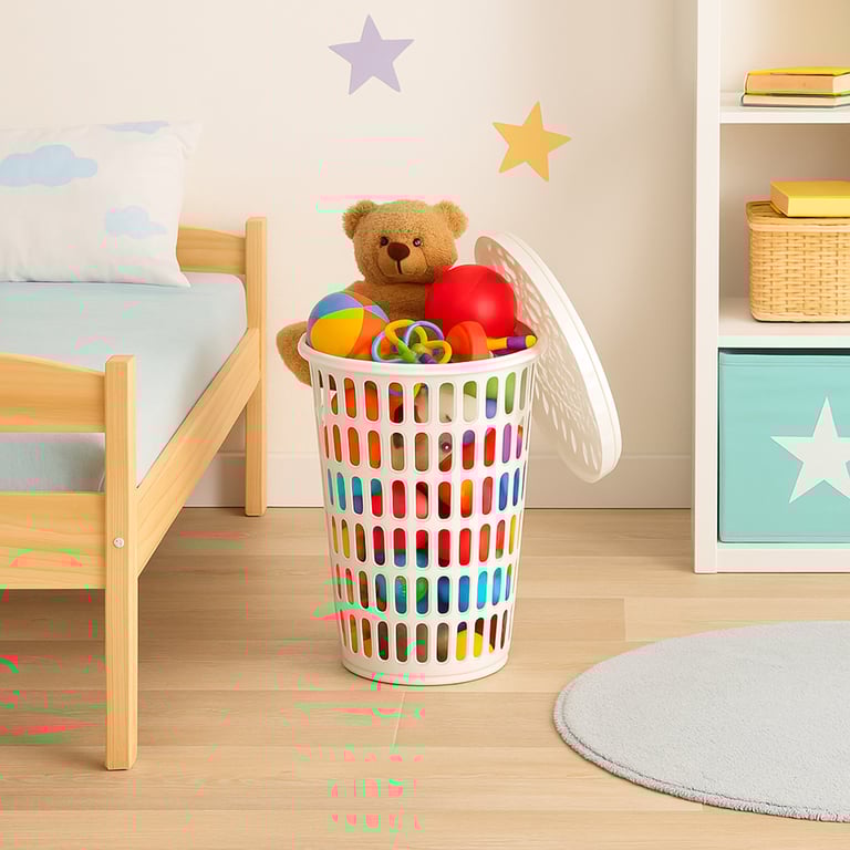 CESTO PLÁSTICO 60 L COM TAMPA TELADO BRANCO