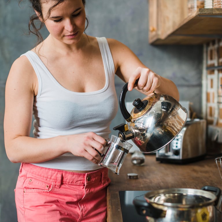 COLOCAR ÁGUA SOMENTE ATÉ O BICO DA CHALEIRA, PARA EVITAR DERRAMAMAMETO(2 L)