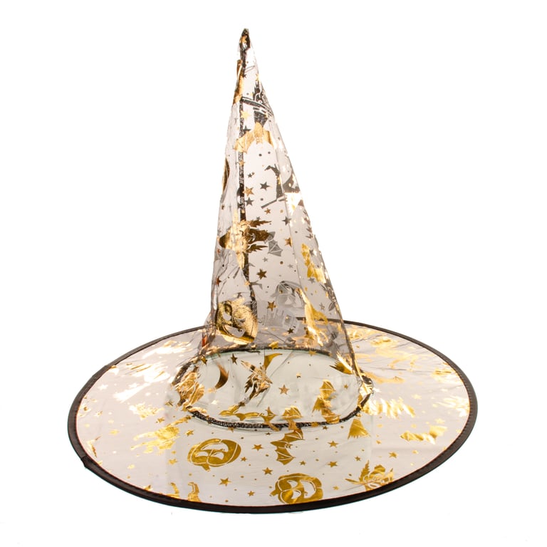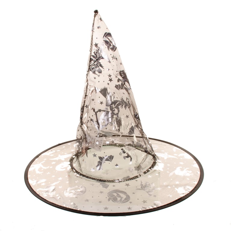 CHAPÉU DE BRUXA 33X38 CM TRANSPARENTE COM GATO ABÓBORA