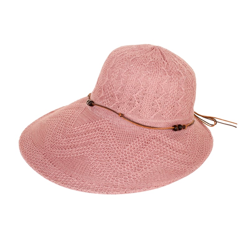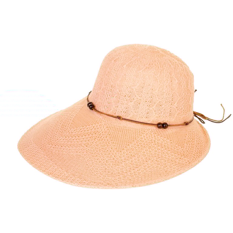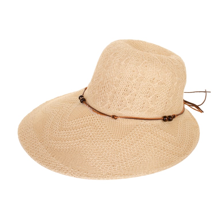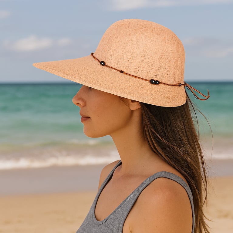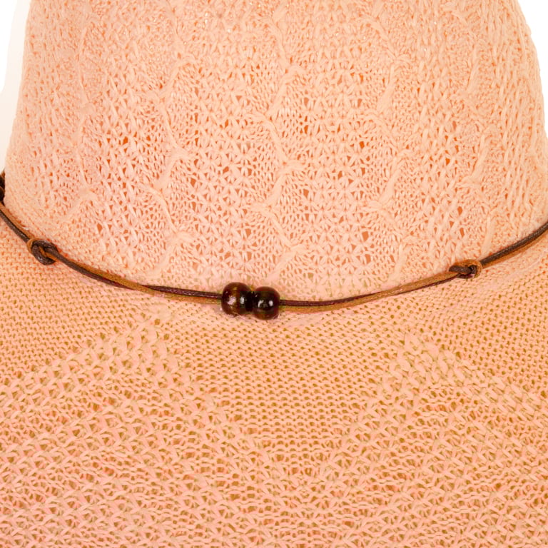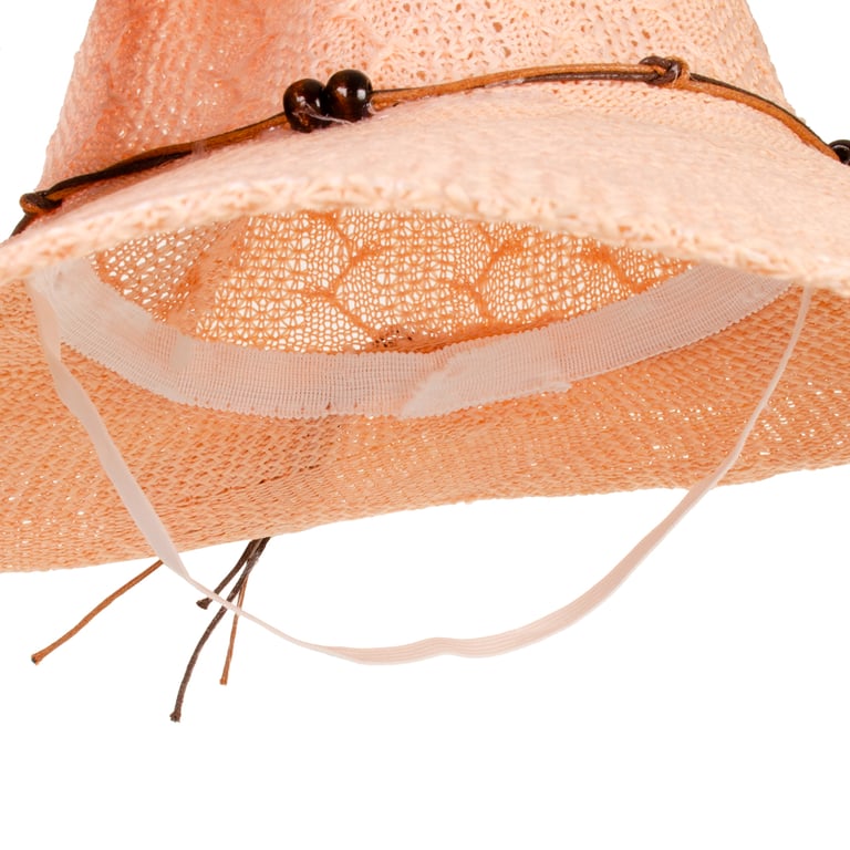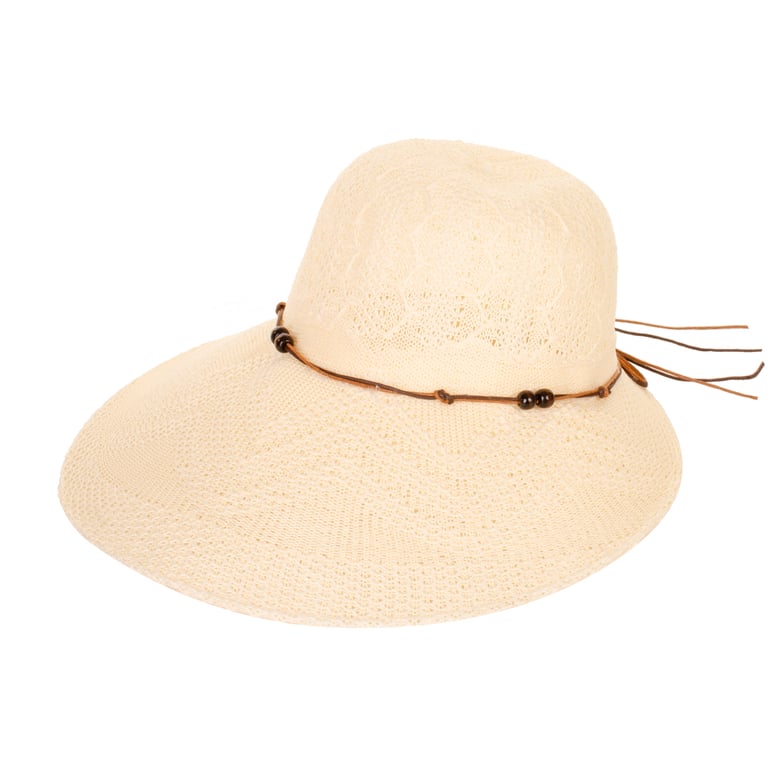CHAPÉU FEMININO 17X35 CM ABA LONGA CORDÃO COM MIÇANGAS MADEIRA