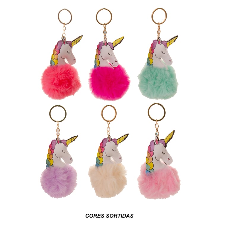CHAVEIRO POMPOM 12 CM UNICÓRNIO TECIDO