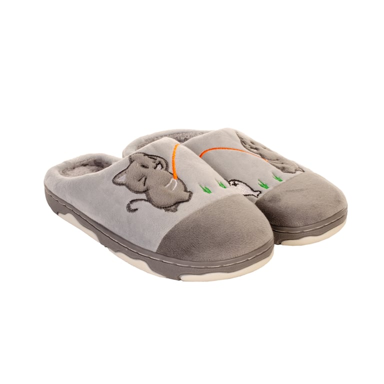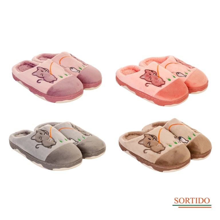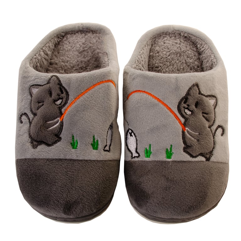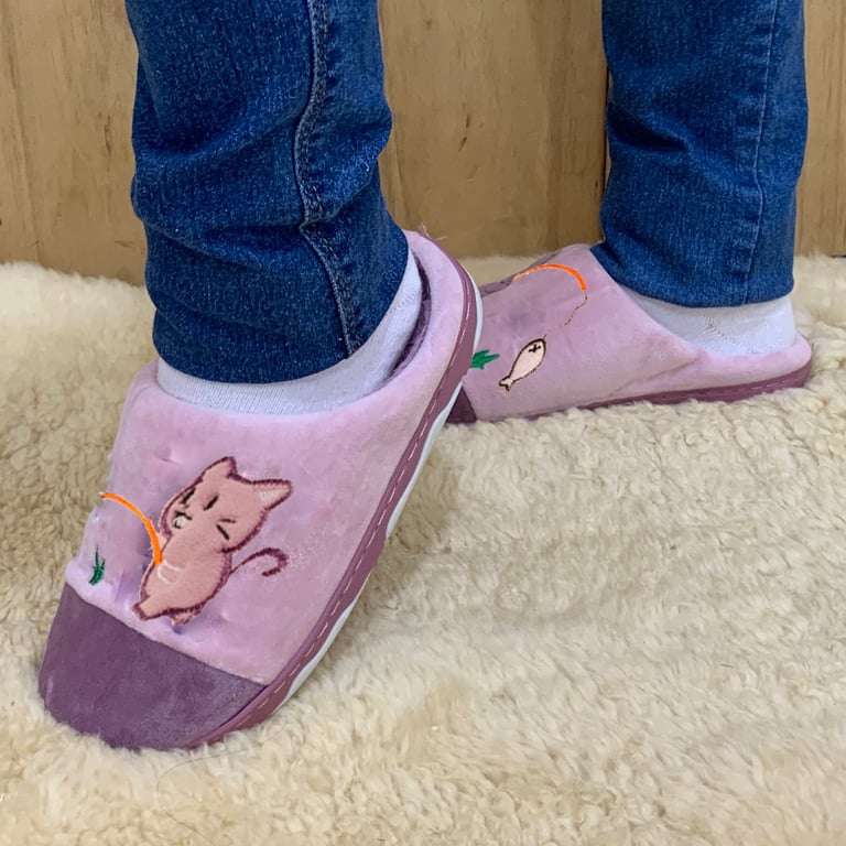 CHINELO / PANTUFA LÃ INFANTIL GATO COM PEIXE SOLA EMBORRACHADA