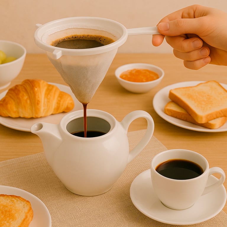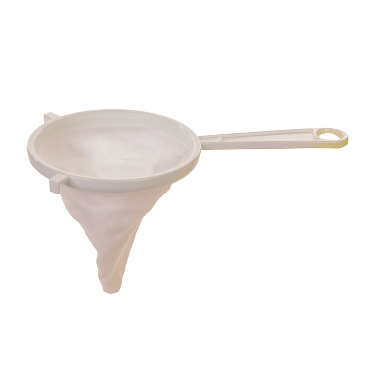 Composição BORDAS E CABO EM PLÁSTICO E COADOR DE PANO.