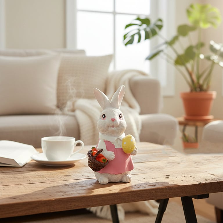 COELHO / COELHA RESINA 10X5X4 CM CESTO COM CENOURAS