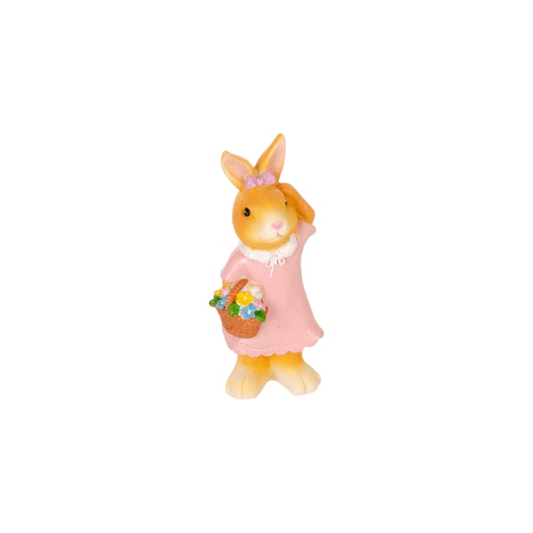 COELHO / COELHA RESINA 14X5X5 CM EM PÉ CESTO COM CENOURAS / FLORES