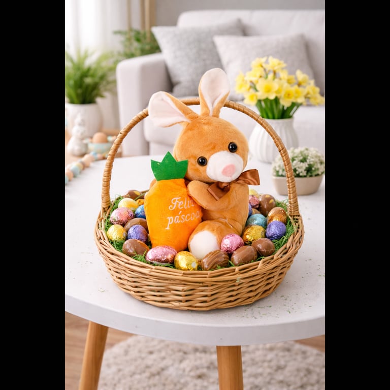 COELHO PELÚCIA 22 CM COM CENOURA FELIZ PÁSCOA