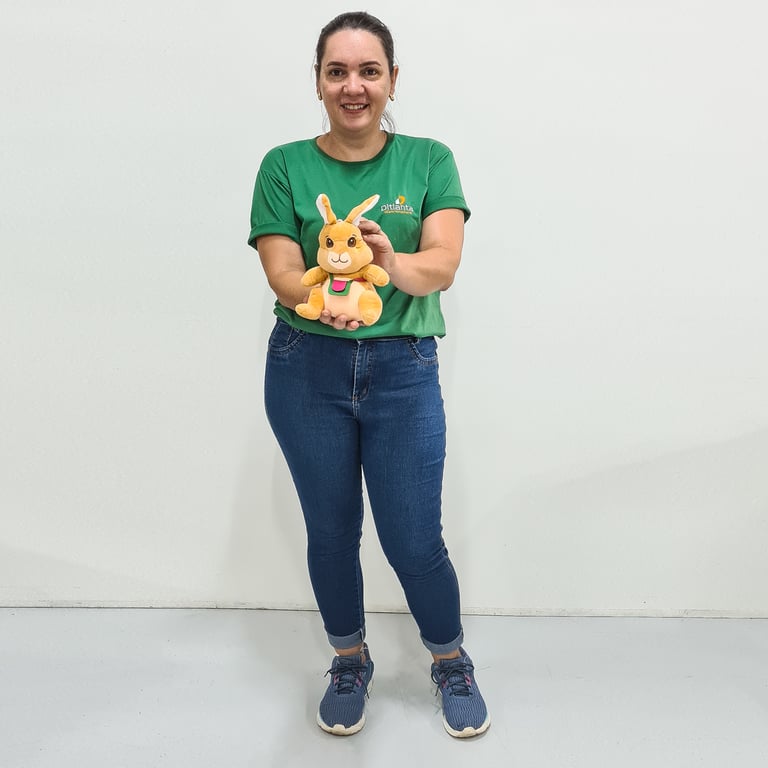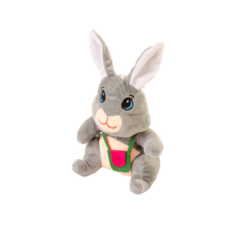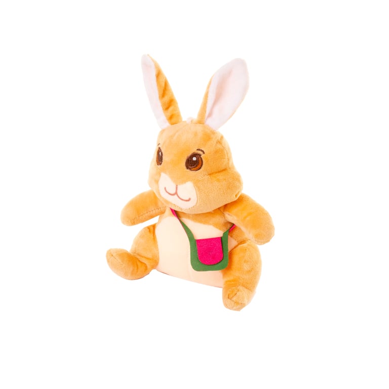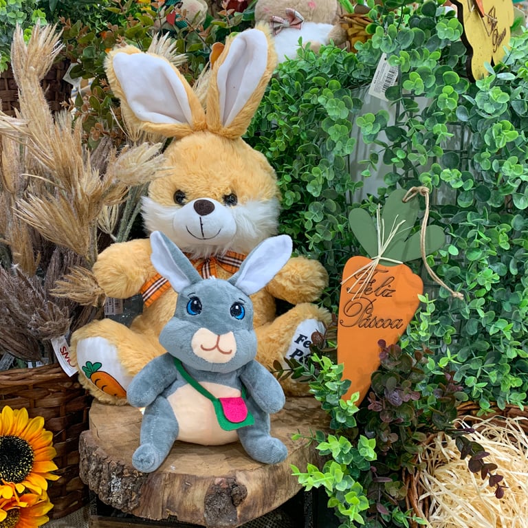 COELHO PELÚCIA 25 CM COM BOLSA ROSA E VERDE