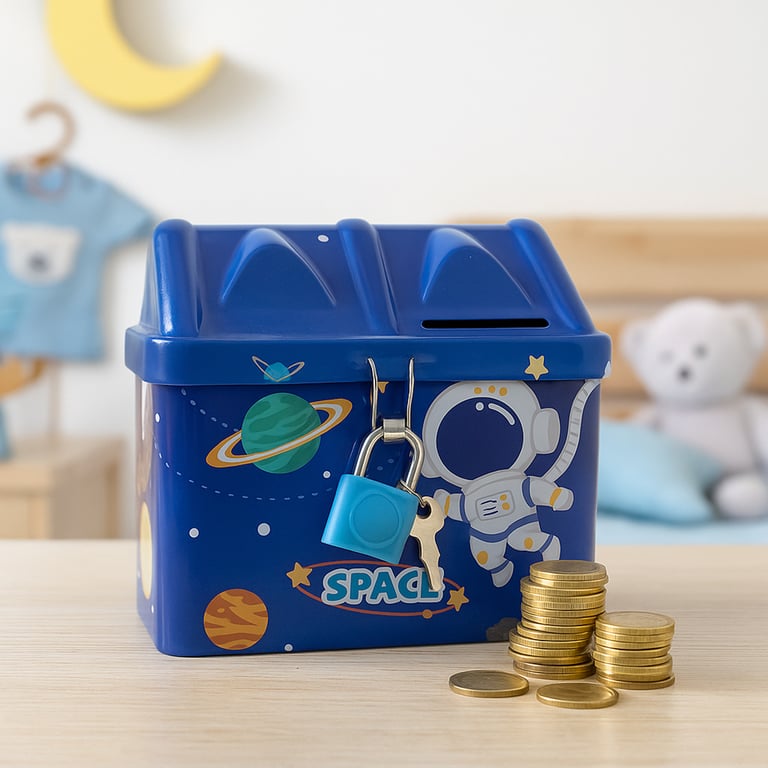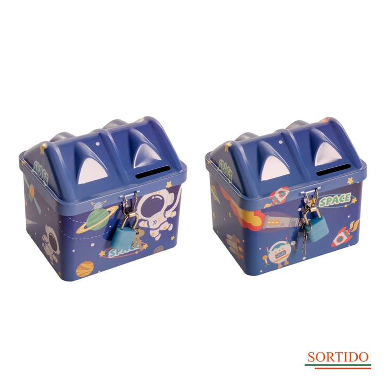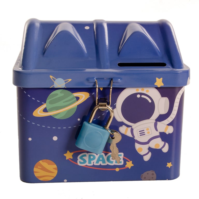 COFRE METAL 10X12X9 CM CASA FOGUETES ASTRONAUTA