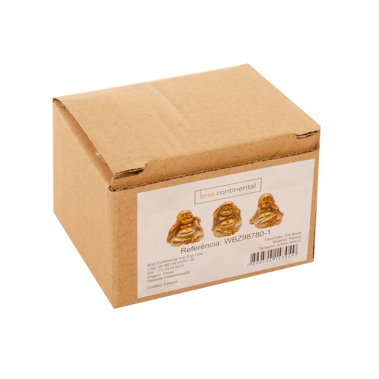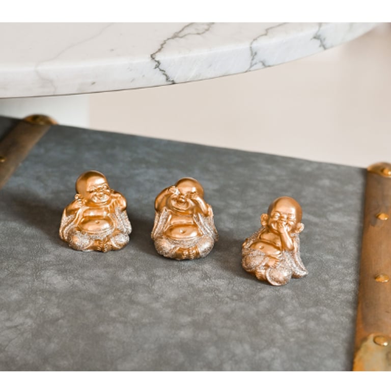 CONJUNTO BUDA RESINA 4X4,5X4,3 CM SÁBIOS 3 PEÇAS DOURADO COM GLITTER