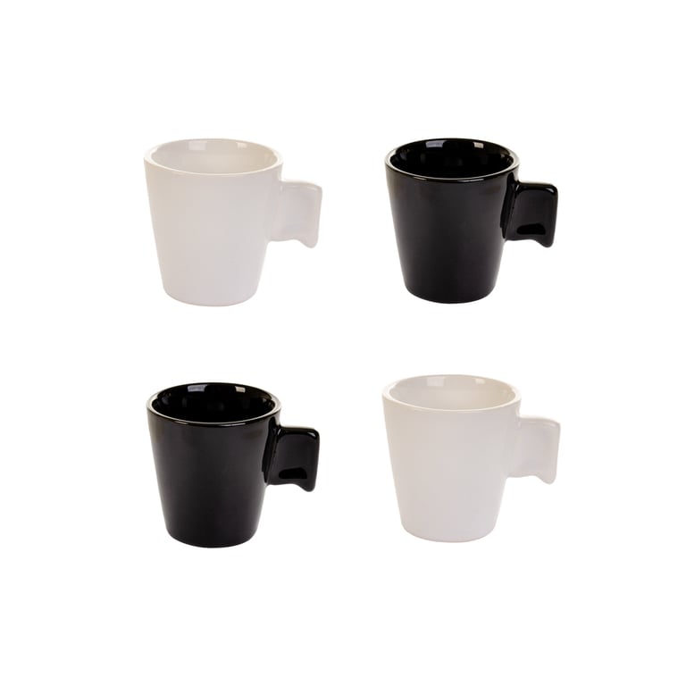CONJUNTO CANECA / XÍCARA CERÂMICA 4 PEÇAS 90 ML BRANCO E PRETO