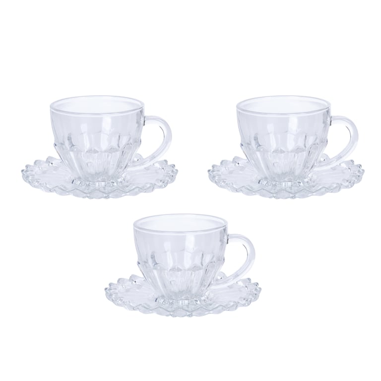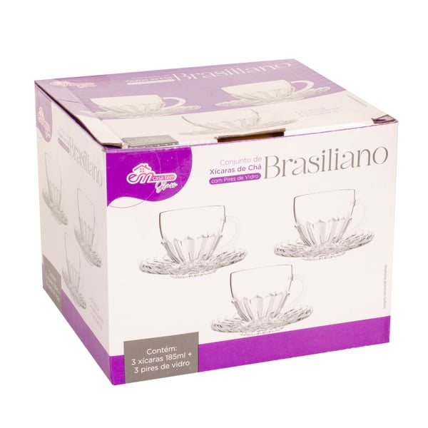 CONJUNTO CANECA / XÍCARA VIDRO 185 ML COM PIRES 3 PEÇAS BRASILIANO