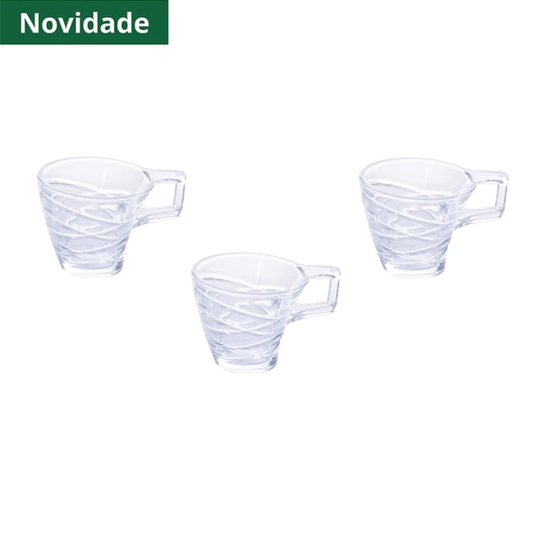 CONJUNTO CANECA / XÍCARA VIDRO 3 PEÇAS 70 ML LUGANO