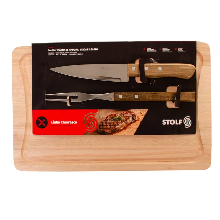 CONJUNTO CHURRASCO TÁBUA / FACA / GARFO