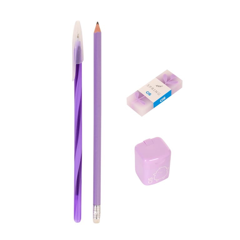 CONJUNTO ESCOLAR 23X10 CM 4 PEÇAS CANETA LÁPIS BORRACHA E APONTADOR COLORS