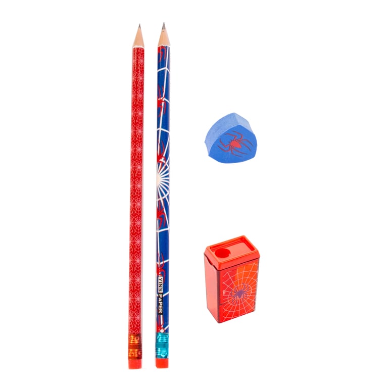 CONJUNTO ESCOLAR 26X8 CM 4 PEÇAS LÁPIS BORRACHA E APONTADOR