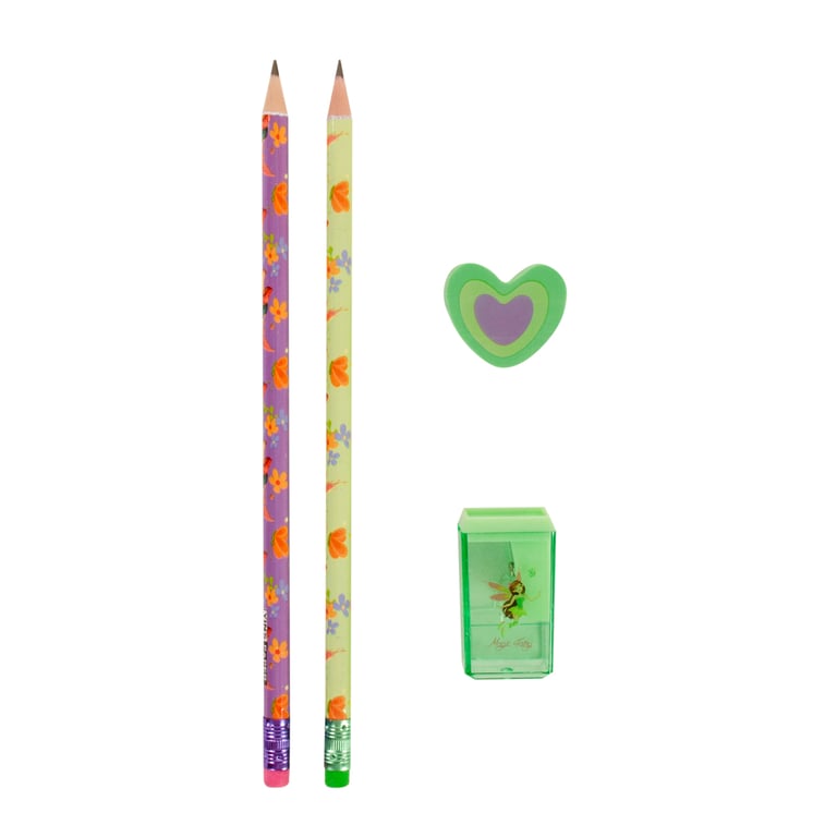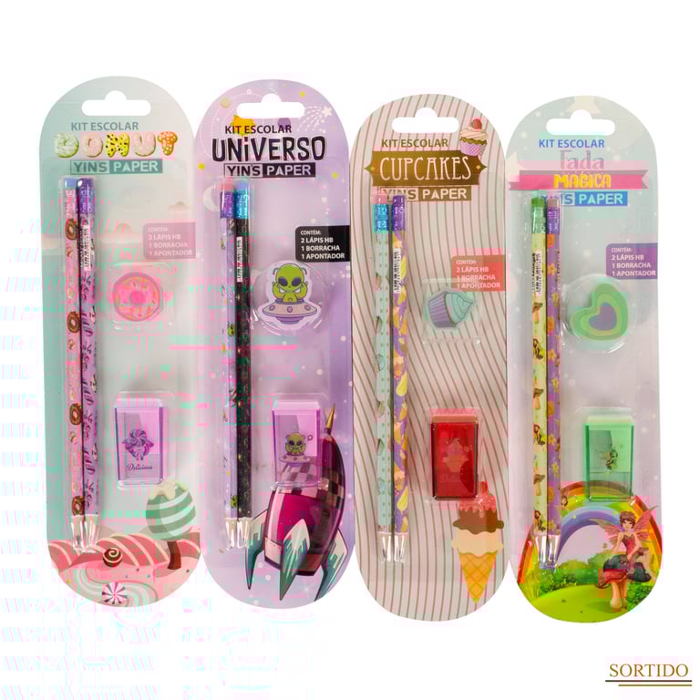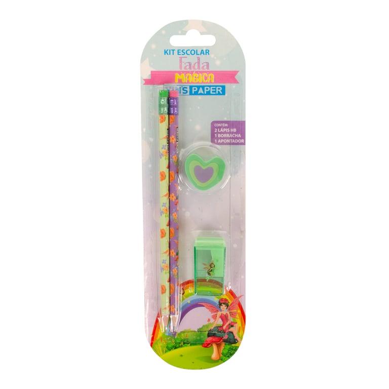 CONJUNTO ESCOLAR 26X8 CM 4 PEÇAS LÁPIS BORRACHA E APONTADOR
