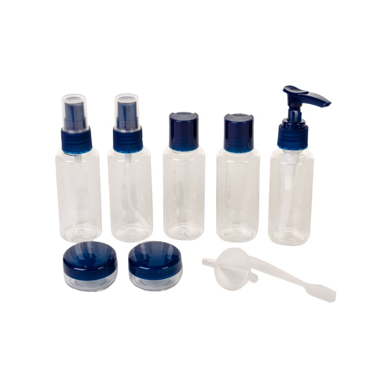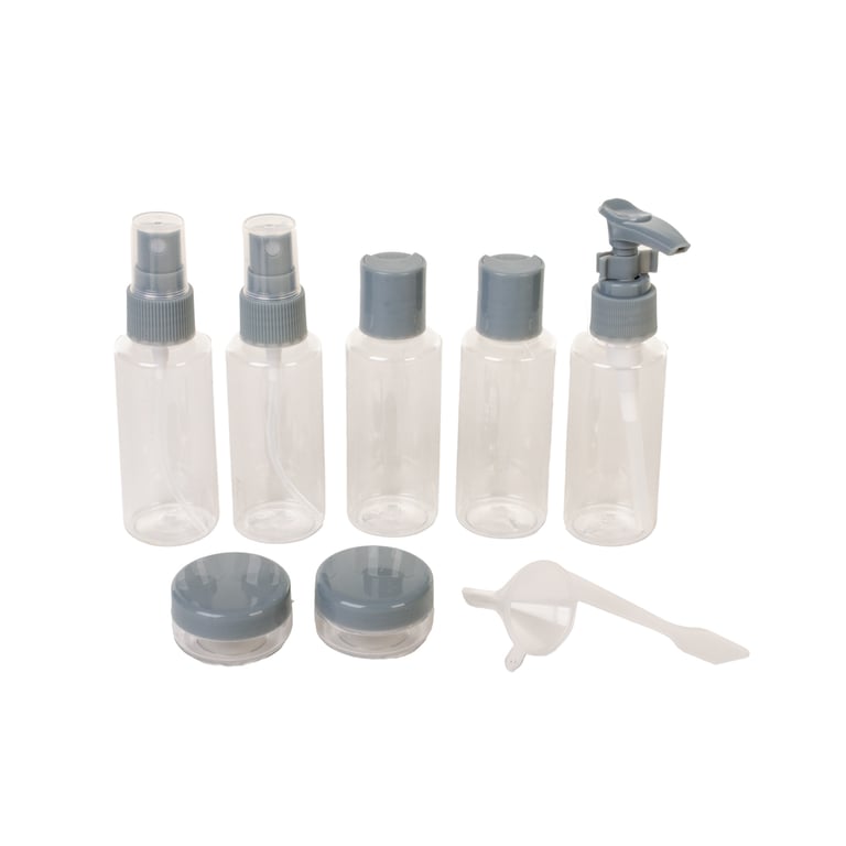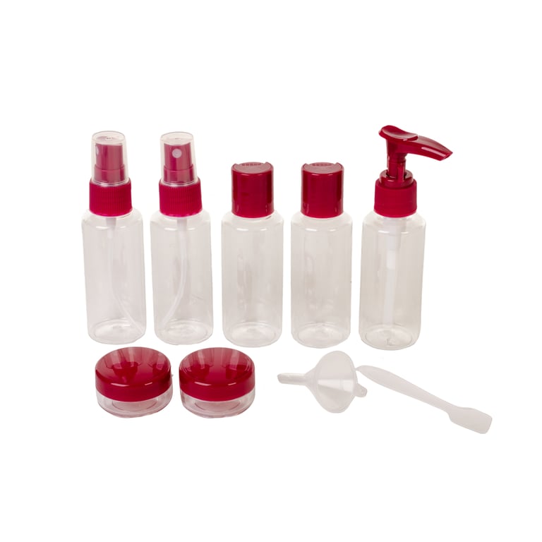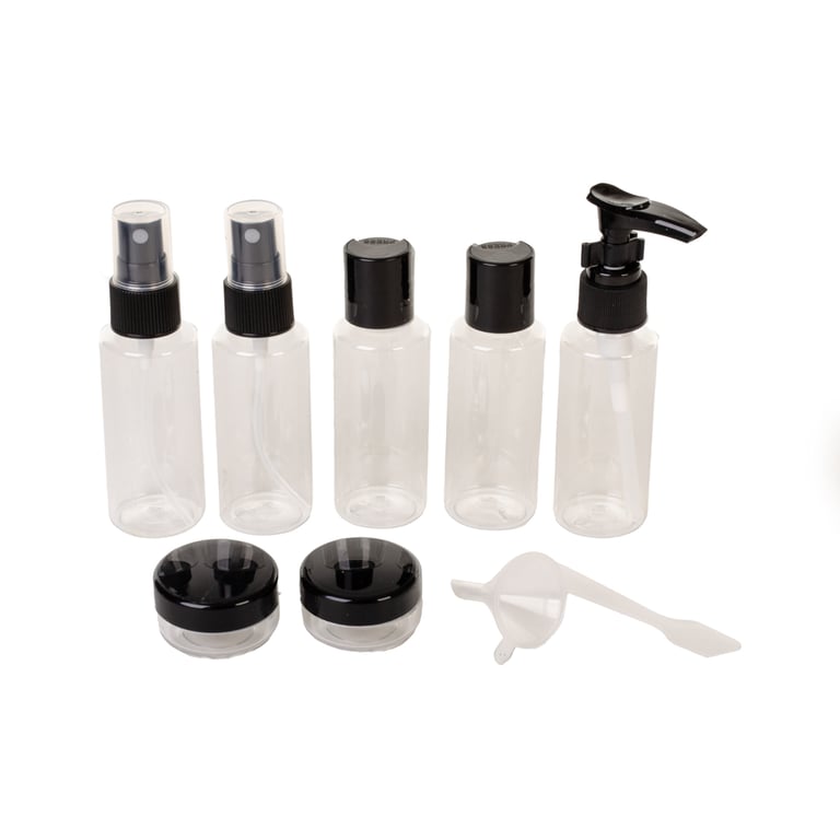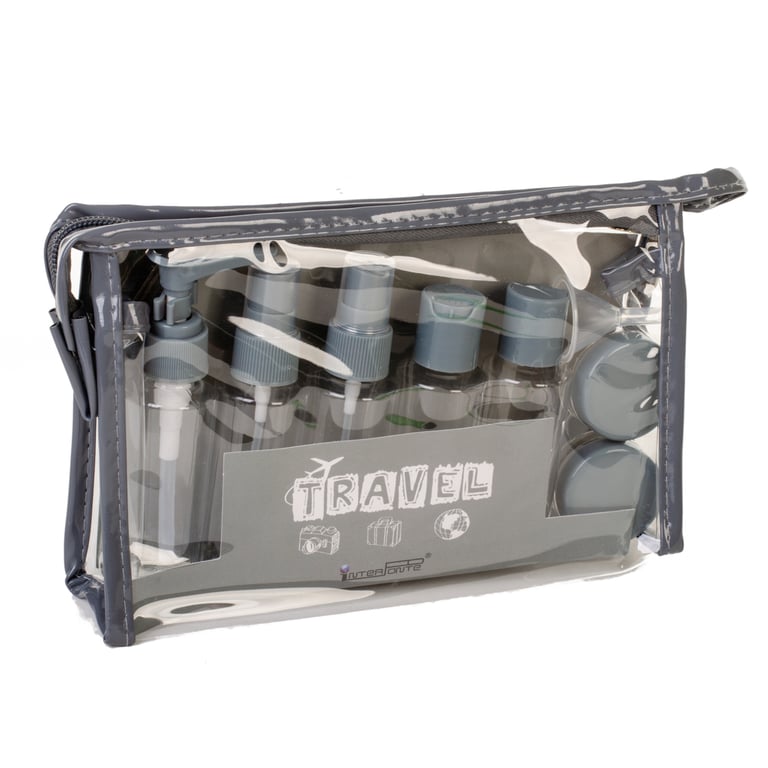 CONJUNTO FRASCO PLÁSTICO 10 PEÇAS PARA VIAGEM