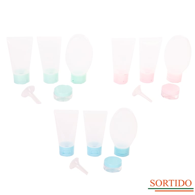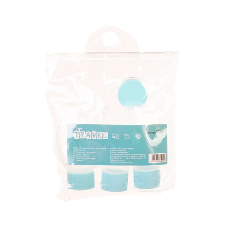 CONJUNTO FRASCO PLÁSTICO 6 PEÇAS PARA VIAGEM