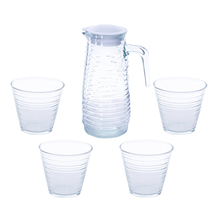 CONJUNTO JARRA COM 4 COPOS VIDRO TURVE