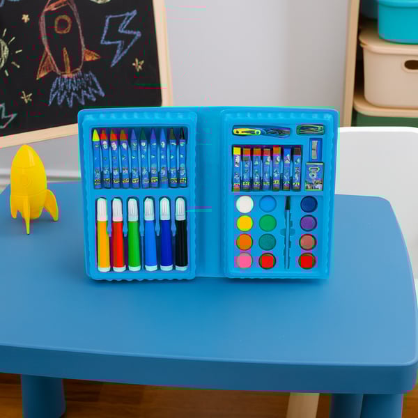 CONJUNTO MALETA ESCOLAR AZUL 3,5X21X13 CM 31 PEÇAS ESTOJO