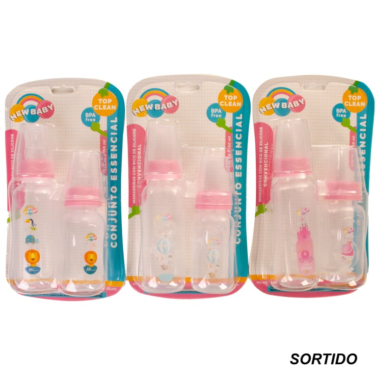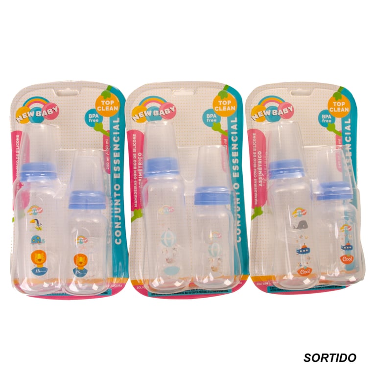 CONJUNTO MAMADEIRA PLÁSTICA 2 PEÇAS COM BICO DE SILICONE