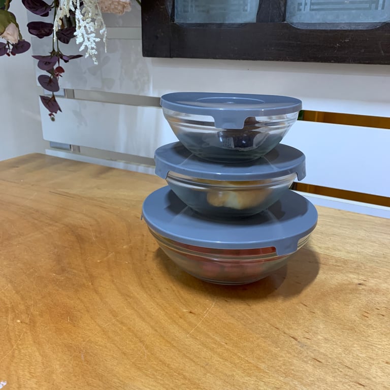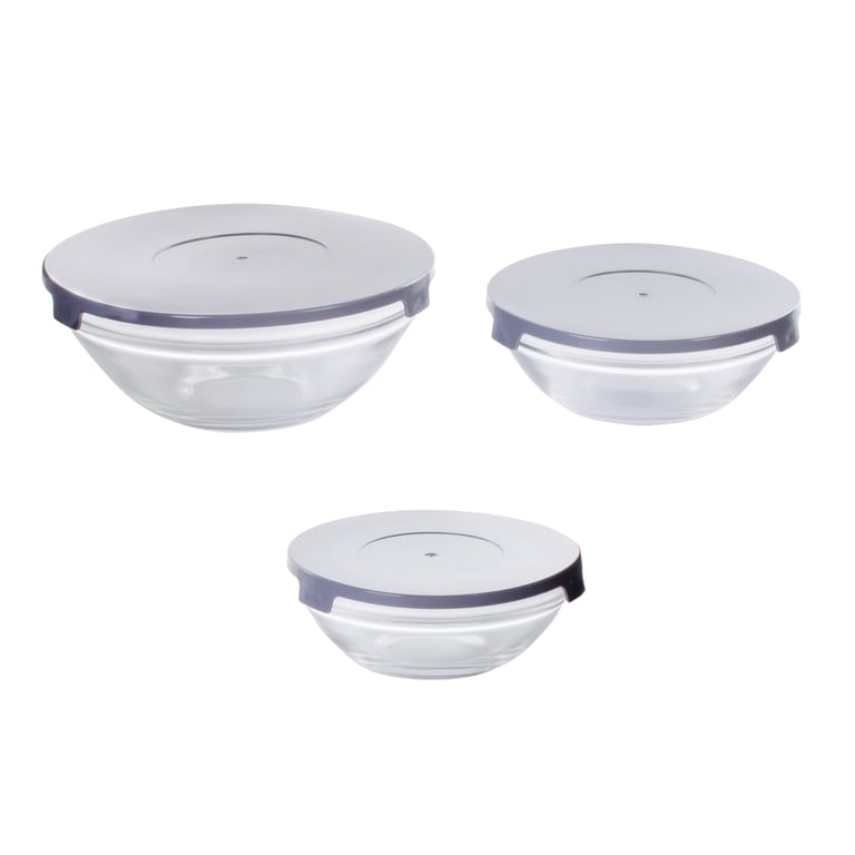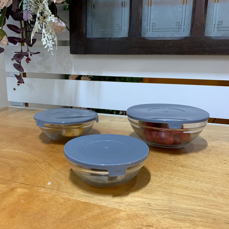 CONJUNTO POTE / TIGELA VIDRO 3 PEÇAS COM TAMPA