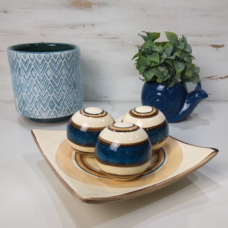 CONJUNTO PRATO CERÂMICA 3 BOLAS 10X21 CM QUADRADO