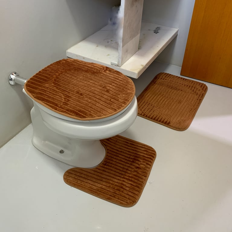 CONTÉM 1 TAPETE PARA FRENTE DA PIA, 1 PARA FRENTE DO VASO E 1 TAMPA PARA VASO.