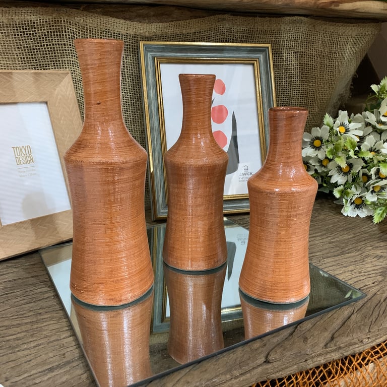 CONJUNTO VASOS CERÂMICA 3 PEÇAS GARRAFA CHER