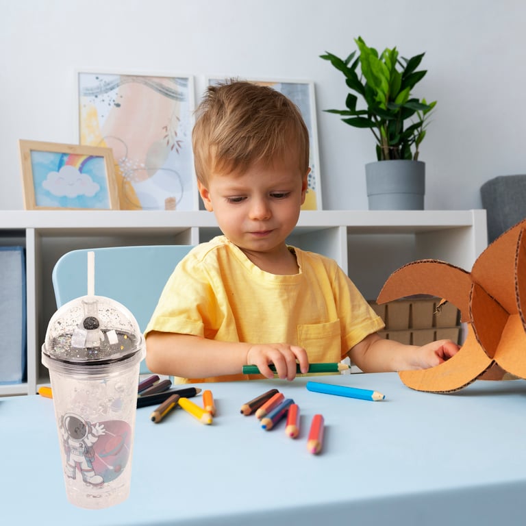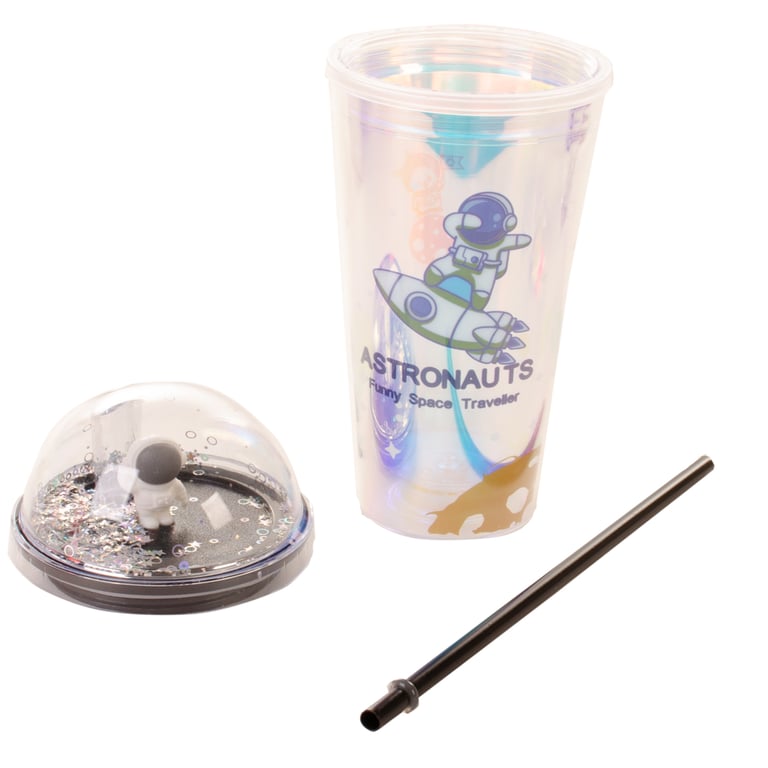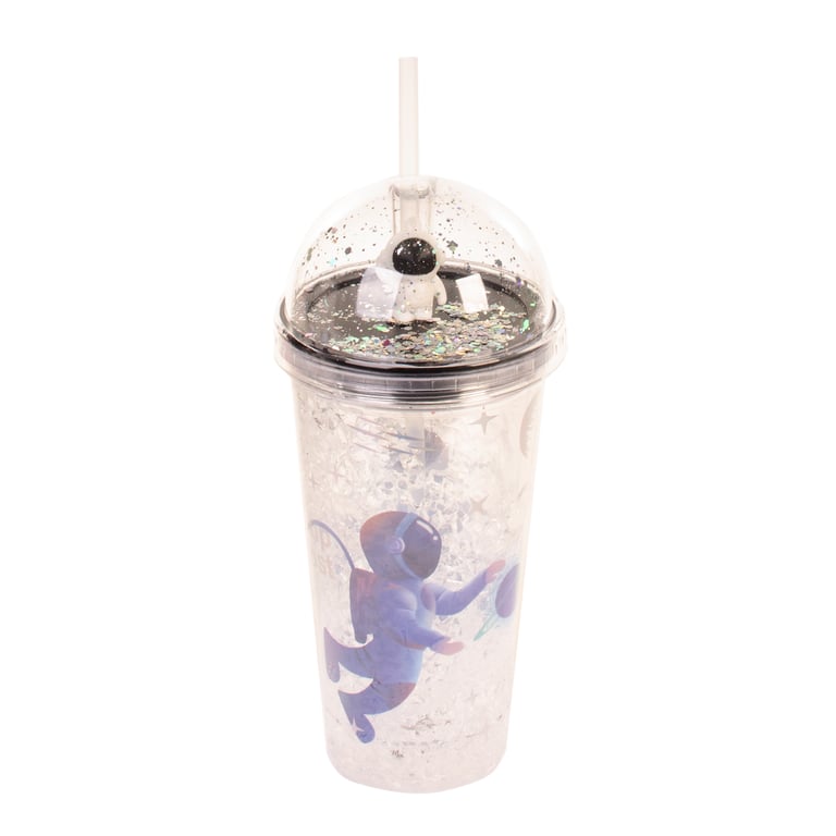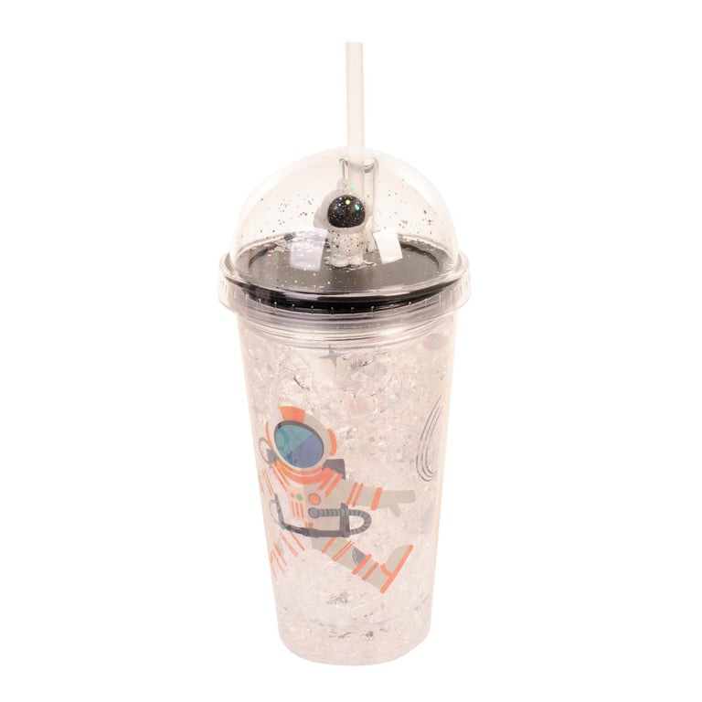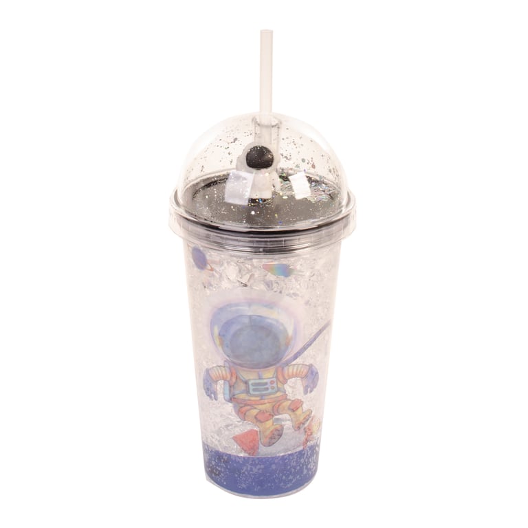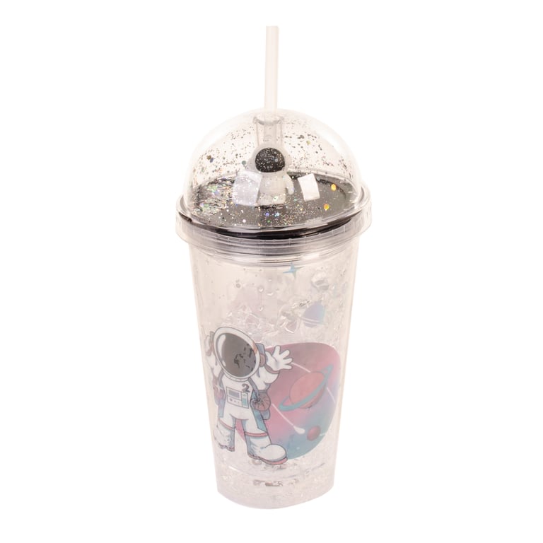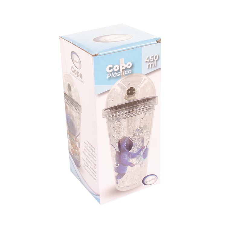 COPO PLÁSTICO 450 ML LED CANUDO E TAMPA COM ASTRONAUTA