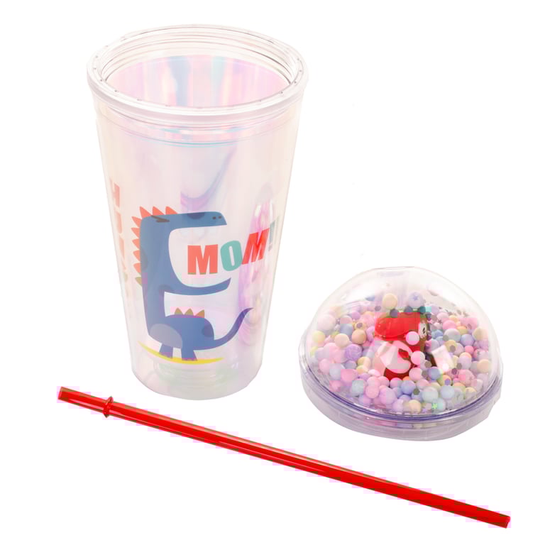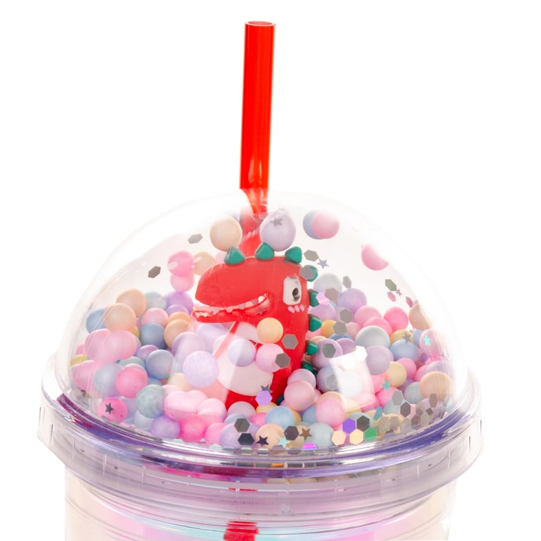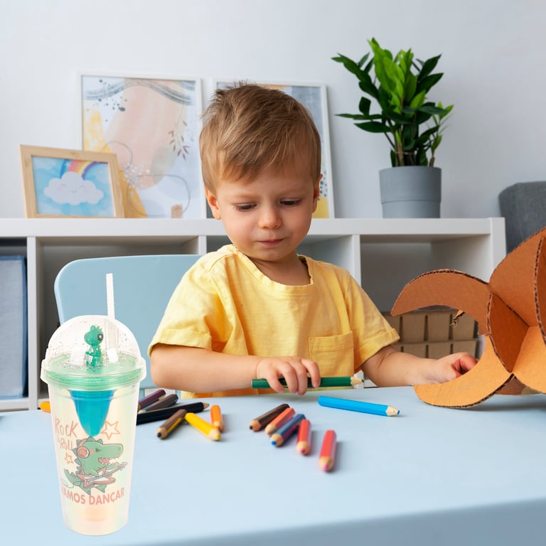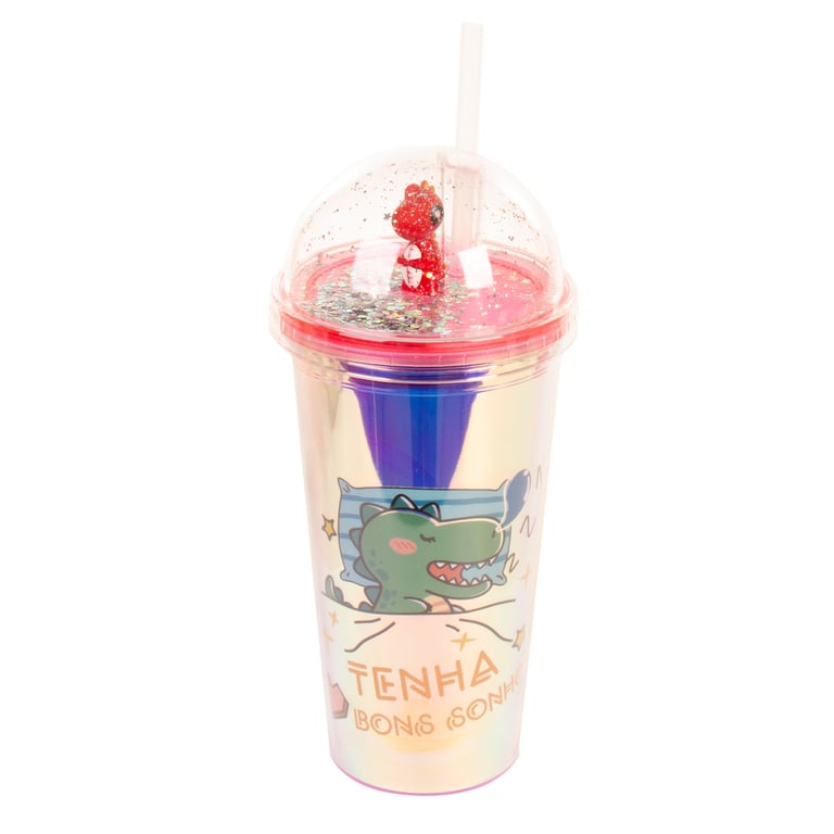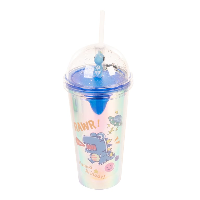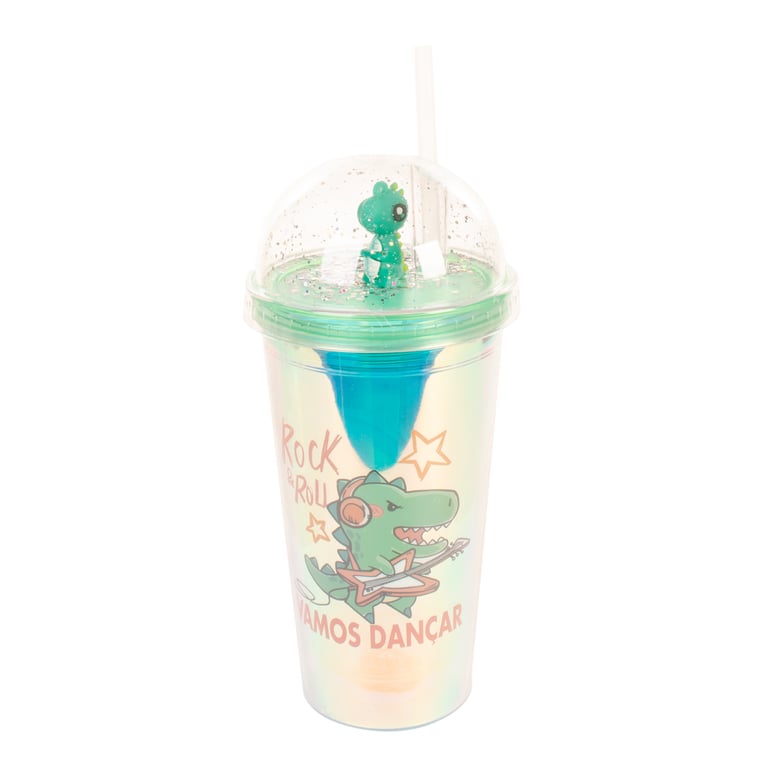 COPO PLÁSTICO 450 ML LED CANUDO E TAMPA COM DINOSSAURO
