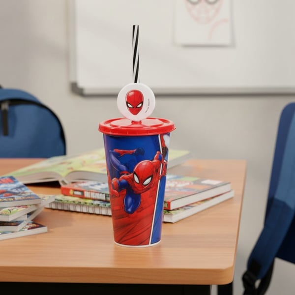 COPO PLÁSTICO 500 ML COM CANUDO HOMEM ARANHA METALIZADO