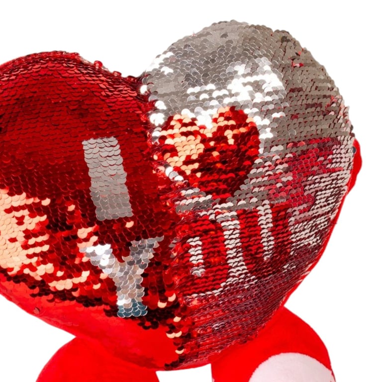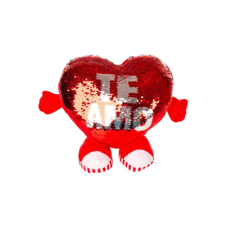 CORAÇÃO PELÚCIA 21X35 CM COM MÃO E PÉS LANTEJOULAS DUPLA FACE