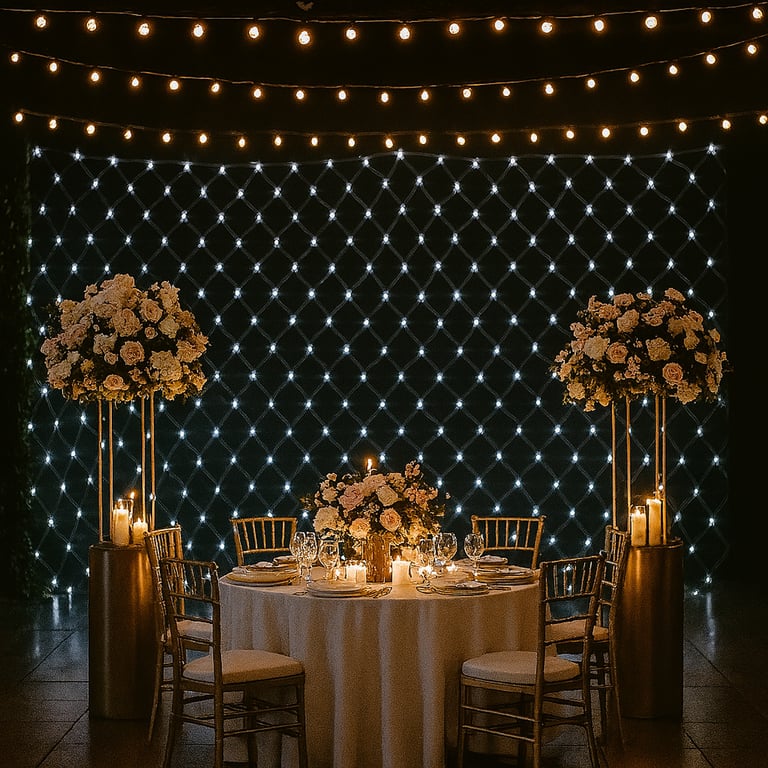 CORTINA / CASCATA 300 LEDS BRANCO FRIO MACHO / FÊMEA FIXA 2X3 M FIO BRANCO 220V