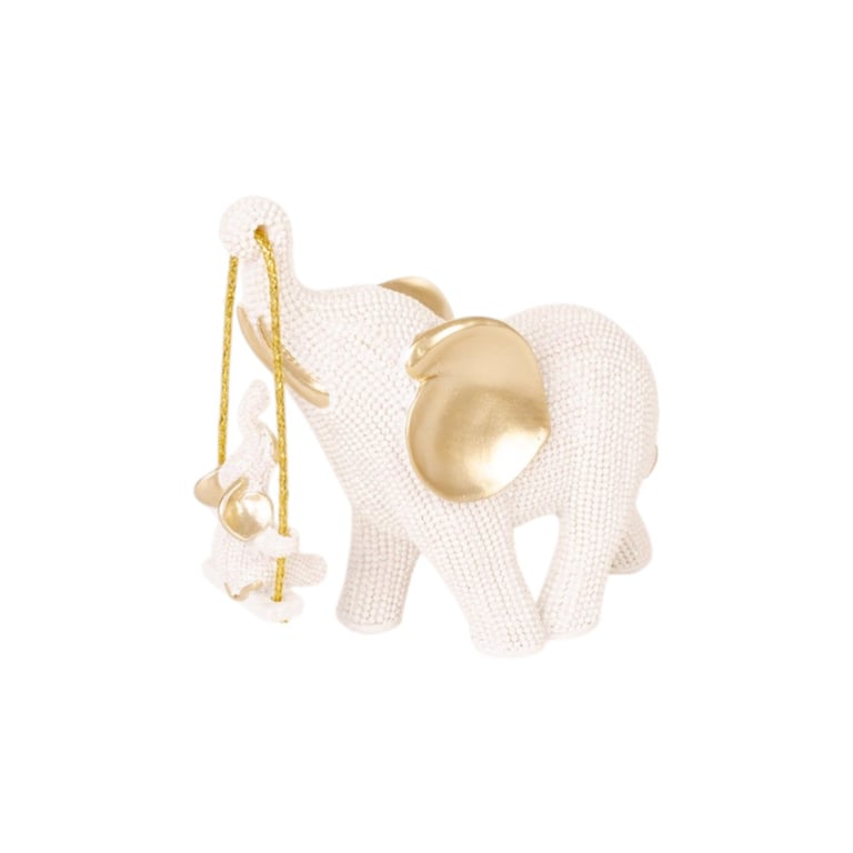 ELEFANTE RESINA 14X5X15 CM COM FILHOTE NO BALANÇO